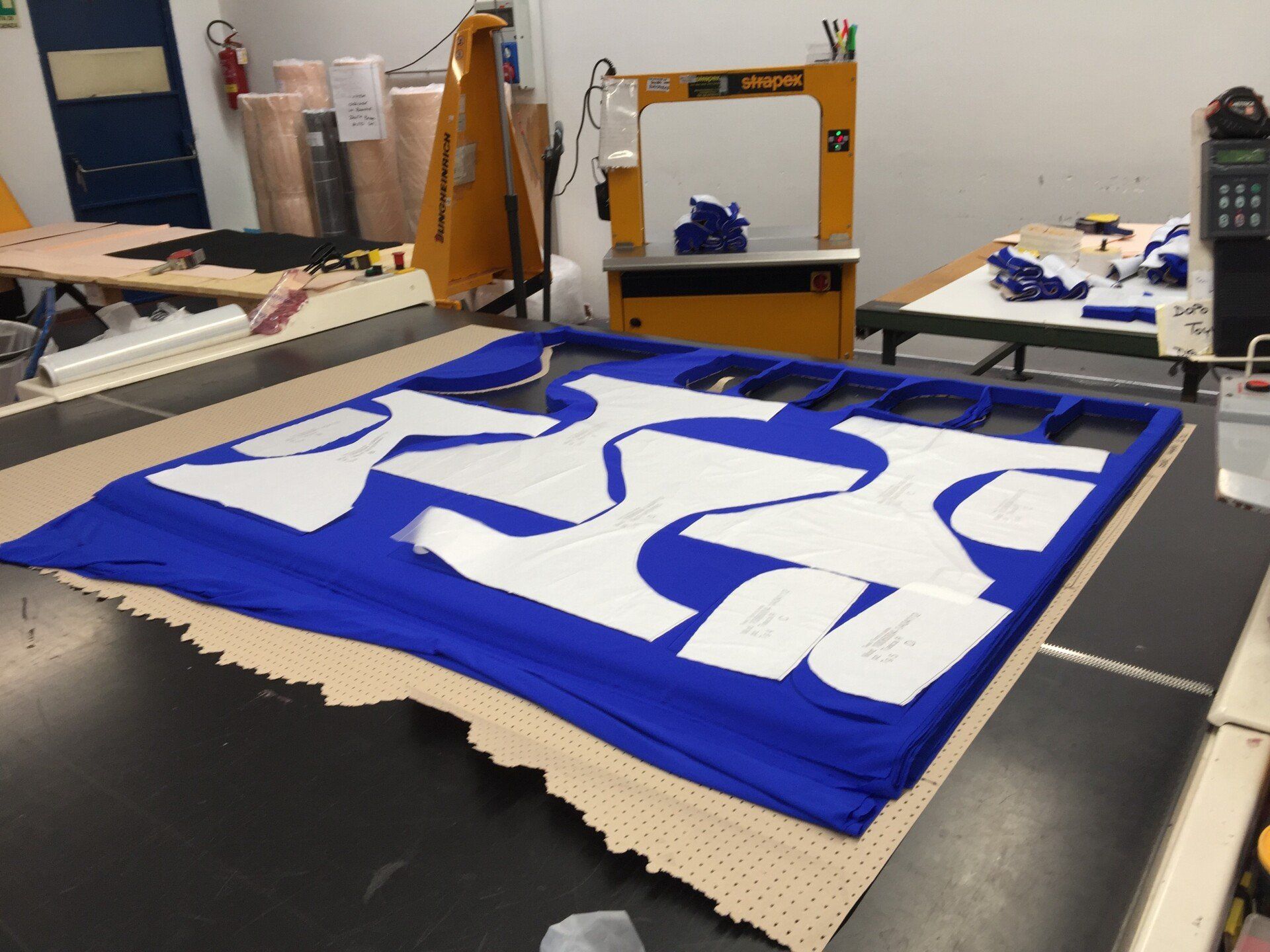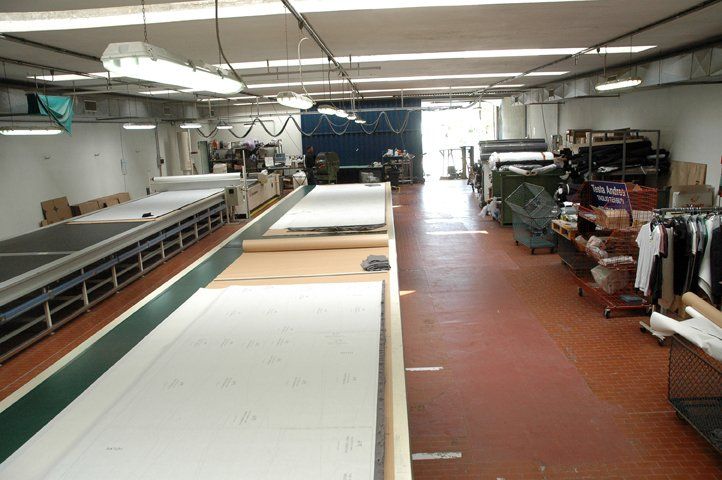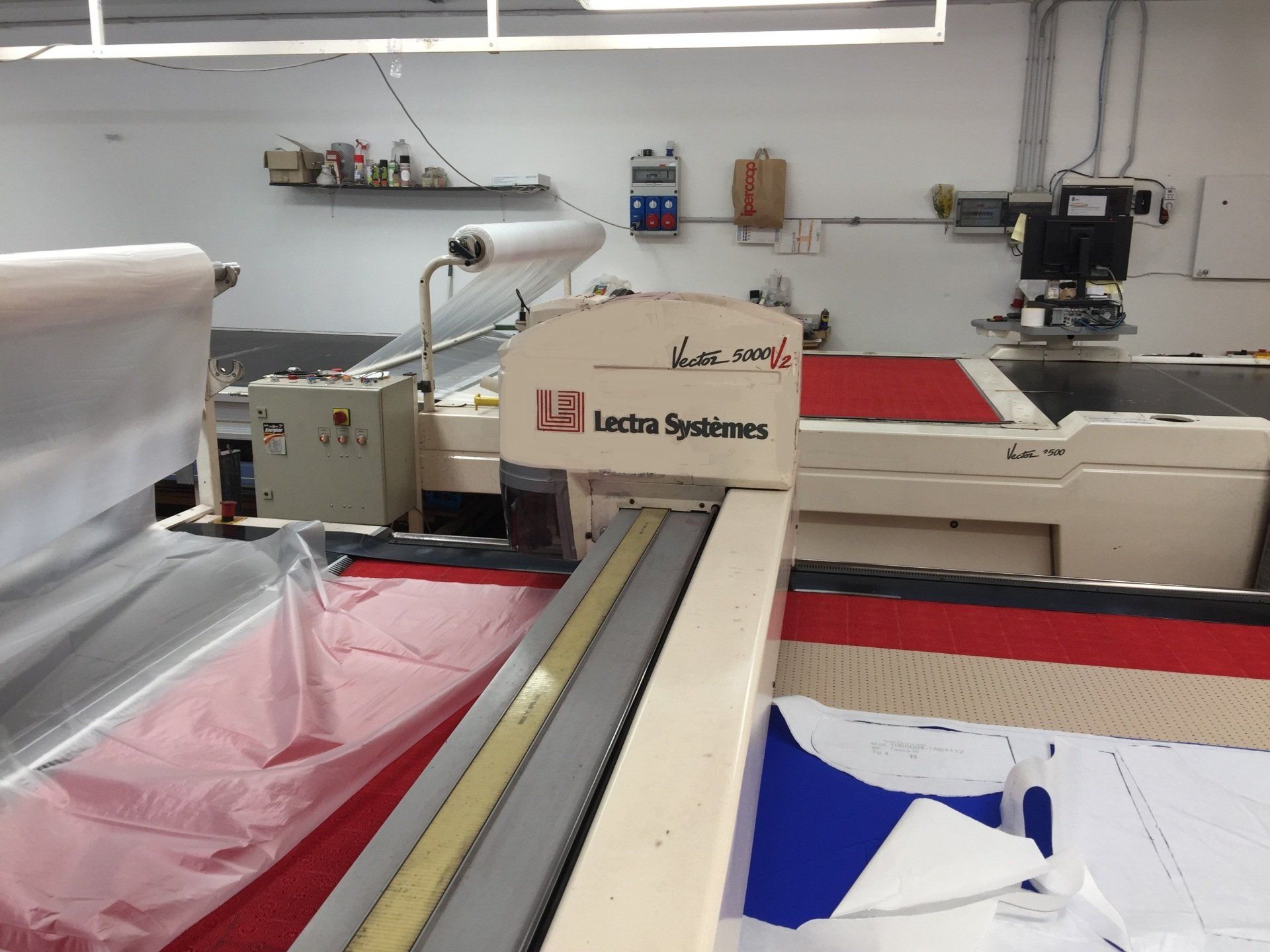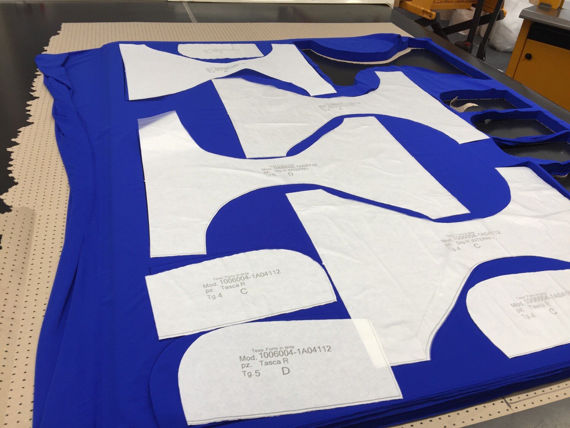 L'attrezzatura all'avanguardia presente in sala taglio permette di trattare e tagliare su qualsiasi genere di tessuto, anche tecnico, come tessuti in felpa, poliestere, lycra, chiffon, seta, cotone e pile.